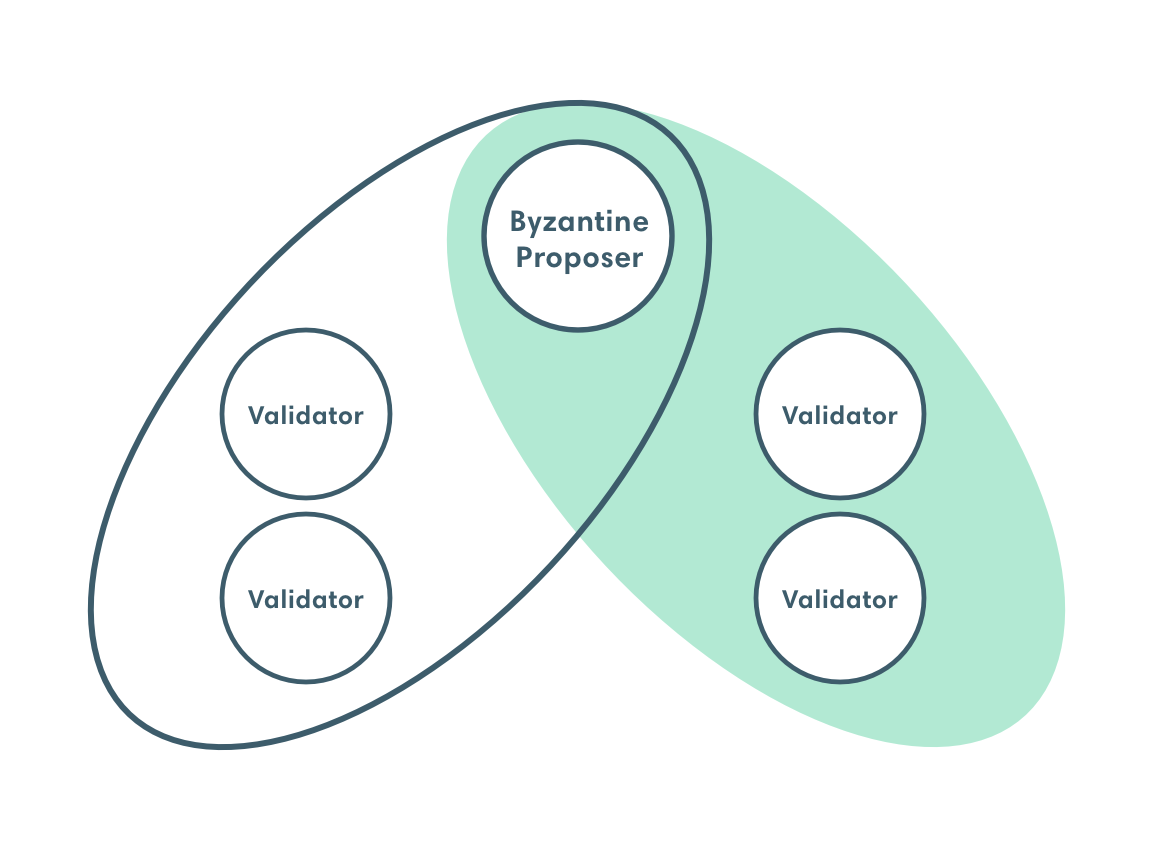 The IBFT 1.0 implementation has known areas for improvement with safety and liveness. Roberto Saltini, one of our researchers at PegaSys, recently proved theoretical flaws in IBFT 1.0 after problems were encountered implementing IBFT 1.0 in Pantheon. Discussions with our colleagues at Clearmatics determined that they too had encountered similar issues while implementing IBFT 1.0.On the safety side, one example is that in IBFT 1.0, if the proposer is Byzantine then under certain circumstances the Byzantine proposer can have different blocks committed at the same height of the blockchain by reaching consensus with two sets of validators. For example, if the network has 5 validators, IBFT 1.0 requires agreement of only 3 nodes for the next block to be added to the blockchain. As shown below, a Byzantine proposer can reach consensus on different blocks with two distinct sets of validators.
