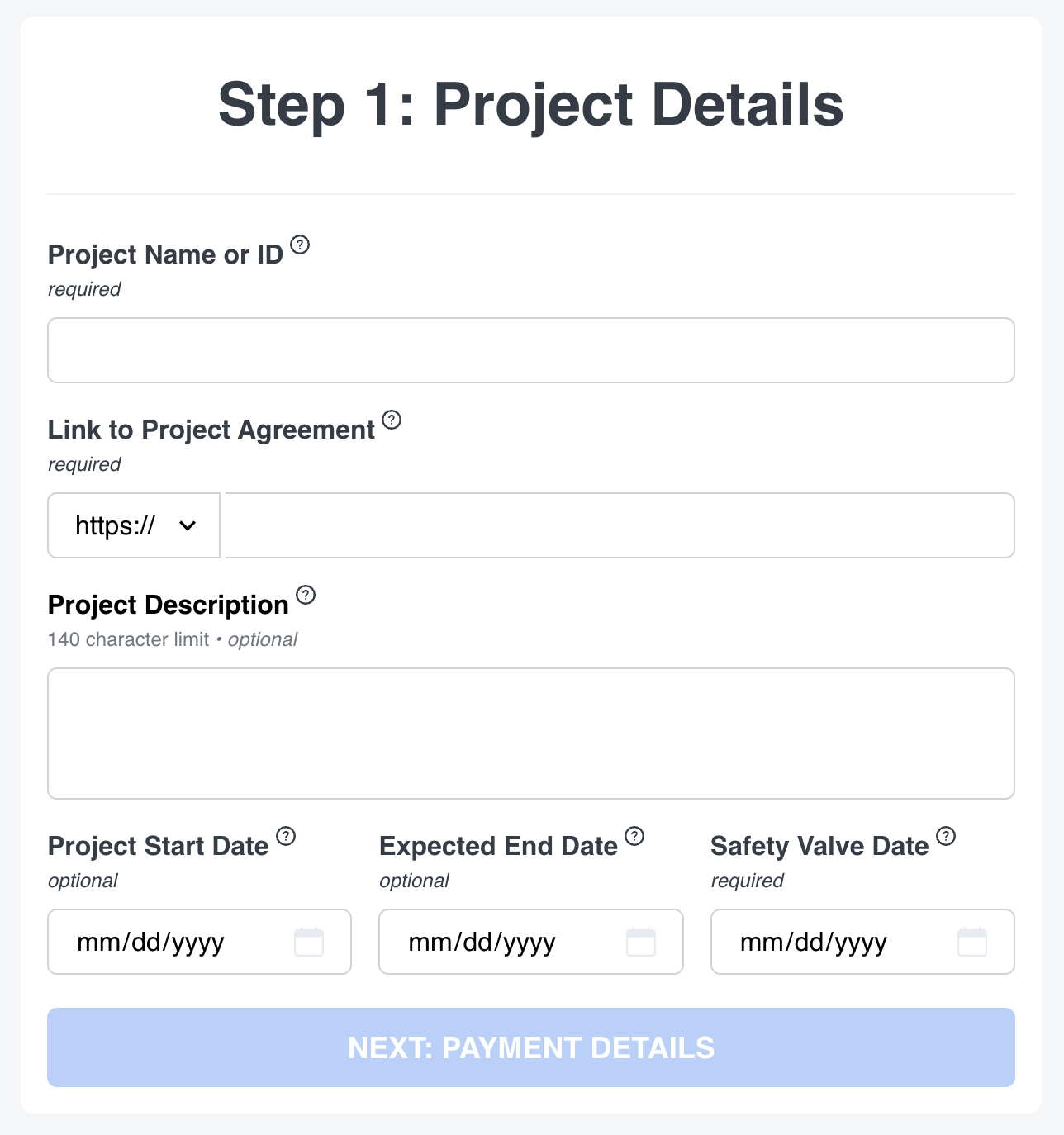 The second is the safety valve date.This is the date when the client can withdraw any remaining funds held in escrow - whether the project is complete, or not. (So, it’s a good idea to add some buffer time here in case the project takes longer than expected).